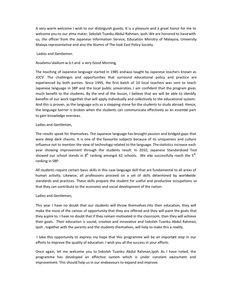 Teks Ucapan Dalam Bahasa Inggeris Majlis Rasmi